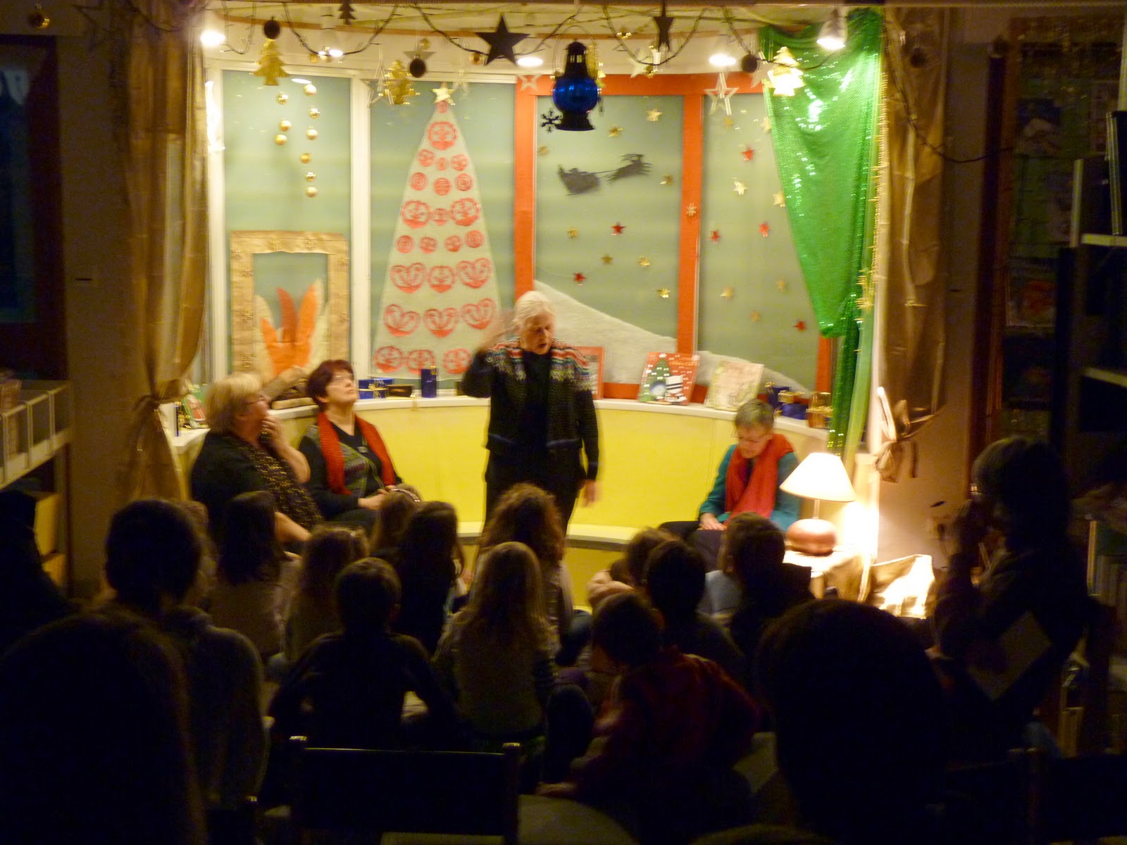 Mercredi dernier, les deux séances de contes ont fait le plein, celle des petits à 17 heures comme celle des plus grands un peu plus tard. Une trentaine d'enfants chaque fois, accompagnés par leurs parents pour la plupart ont regardé et écouté les conteuses de l'Oiseau Lire qui se sont succédé, chacune avec son histoire merveilleuse.Celle de Gabriel et son camion, et du vieux monsieur qui fait du stop le 24 décembre, ou celle de monsieur Gronchon qui n'aime rien ni personne mais qui va se découvrir une amie, l'oie Dindinette avec qui, pour la première fois, il fêtera Noël. Bref, rien que du bonheur derrière ces histoires, et pour pas cher! Alors la prochaine fois que la bibliothèque annoncera son heure du conte, courrez-y!